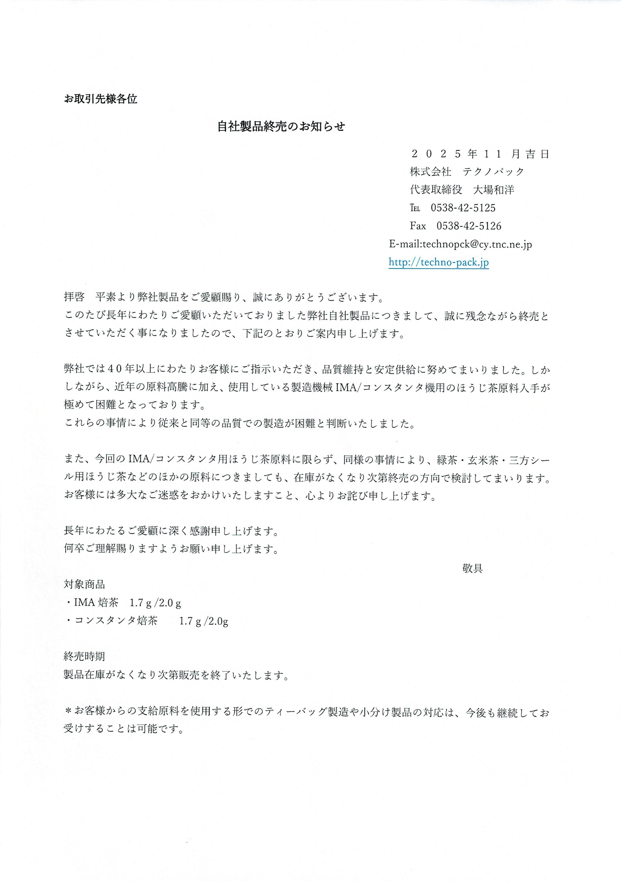 株式会社テクノパックは、ティーバッグの委託加工を行っている会社です。